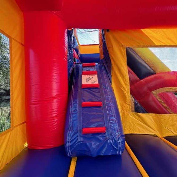 - OCCUPANCY: A maximum of 5-6 kids of equal size at one time for bounce houses, and 1 person at a time for slides is what most inflatable manufacturers recommend.