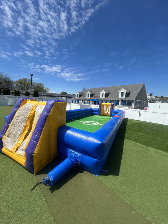 - OCCUPANCY: A maximum of 5-6 kids of equal size at one time for bounce houses, and 1 person at a time for slides is what most inflatable manufacturers recommend.