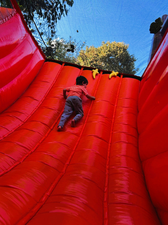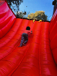 - OCCUPANCY: A maximum of 5-6 kids of equal size at one time for bounce houses, and 1 person at a time for slides is what most inflatable manufacturers recommend.