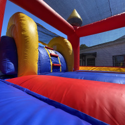 Rainbow Athletic is a dynamic rental item designed to add energy and color to any event. Use Wet or Dry! A roomy bounce area, basketball hoop, climb-and-slide and a shallow splash pad finish. The Rainbow Athletic is ideal for birthdays, school fairs, church events, corporate events or neighborhood gatherings. Optional themed panels (from birthdays to superheroes, princesses, or holiday designs) can be added to match your party’s vibe at no extra cost.