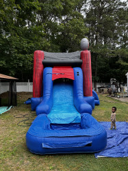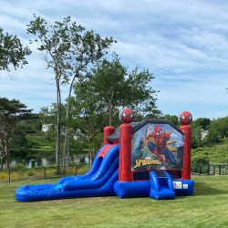 Step into an adventure with our Marvel Spider-Man rental. Inspired by the iconic web-slinger, this dynamic play space brings vibrant superhero imagery and action-packed design to any event, sparking imagination and endless fun for everyone. This slide has a pool.